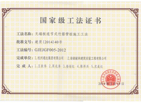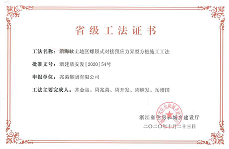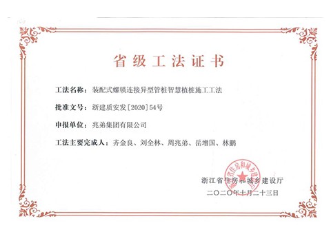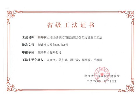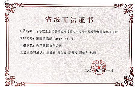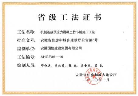 <p style="text-indent: 2em;"><span style=";font-family:微軟雅黑;font-size:14px"><span style="font-family:微軟雅黑"></span></span>公司擁有“無端板連節式竹筋管樁施工工法”“沿海軟土地區螺鎖式對接預應力異型方樁施工工法”、“裝配式螺鎖連接異型管樁智慧植樁施工工法”、“預應力混凝土離心樁無剪切快速強拉對接施工工法”、“無端板連接式竹筋管樁施工工法”、“機械連接預應力混凝土竹節樁施工工法”、“深厚軟土地區螺鎖式連接預應力混凝土異型管樁拼接施工工法”、“軟土地區螺鎖式連接剛柔組合樁施工工法”等8項國家級、省級工法技術。</p><p style="text-indent: 2em;"><br/></p>